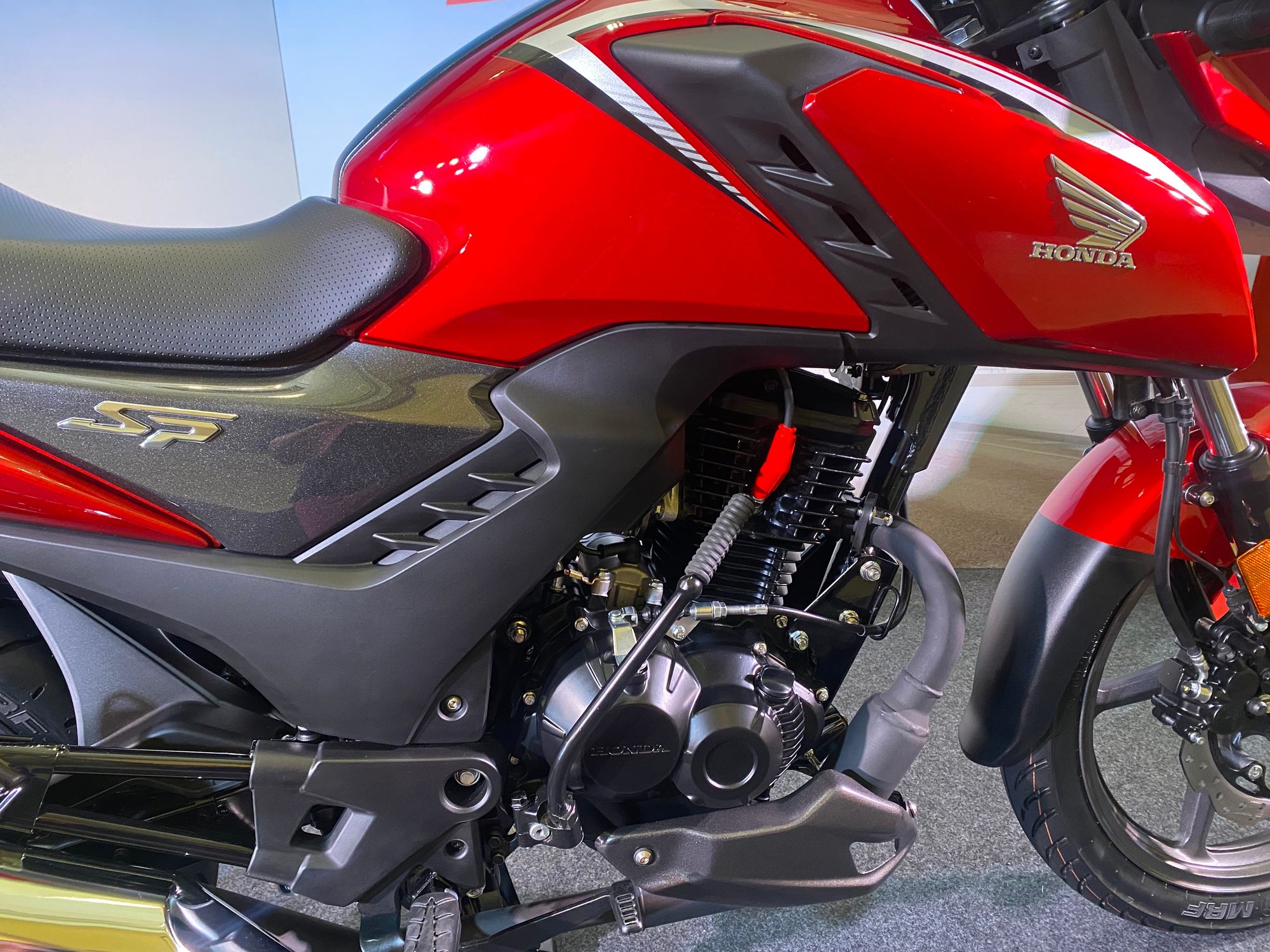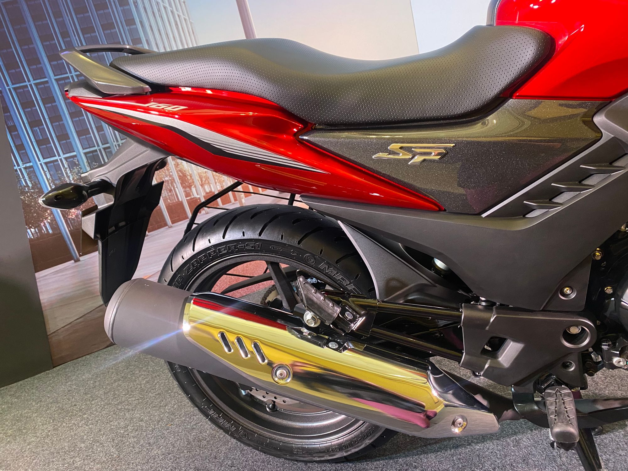 Further adding sportier demeanor to the all-new SP160 is its 130mm wide rear tyre which provides improved traction during acceleration. The inclusion of a sporty muffler with a chrome covering amplifies the stylish & sporty DNA of the motorcycle.