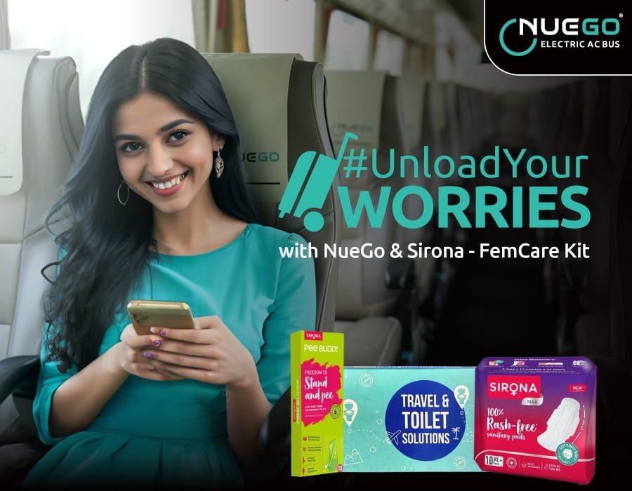 NueGo, India’s largest electric intercity bus brand from GreenCell Mobility, has partnered with Sirona, a leading name in feminine wellness and hygiene, to empower and support women passengers during their bus journeys. As part of this collaboration, Femcare Kits—containing PeeBuddy Stand & Pee device and 100% rash-free sanitary pads—will be available and accessible to all the women guests travelling on the NueGo buses. This initiative aims to enhance women’s comfort during long-distance travel, address menstrual hygiene needs, and break societal taboos surrounding period care. Further strengthening this initiative, all women guests traveling with NueGo on March 8, International Women’s Day, in Bangalore, will receive complimentary hygiene kits—reinforcing the brand’s commitment to raising awareness about feminine hygiene and enhancing travel comfort for women.