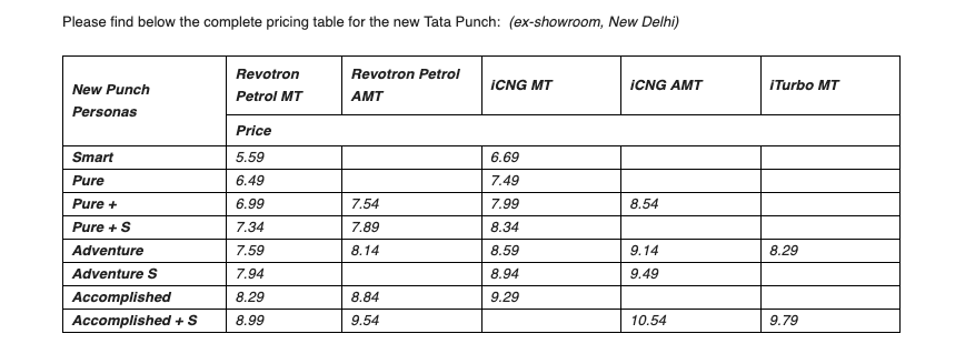 Having pioneered the subcompact SUV category with its debut in October 2021 and already trusted by ~700,000 customers, the new Tata Punch advances its legacy of creating industry benchmarks by introducing two advanced powertrain options, with the 1.2L Turbocharged iTurbo Revotron engine and a combination of twin-cylinder iCNG technology paired with an AMT gearbox.